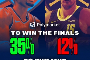 体育资讯11月25日讯 来自权威市场预测机构Polymarket的数据显示,本赛季截至目前,约基奇夺MVP概率36%,高于亚历山大的30%。