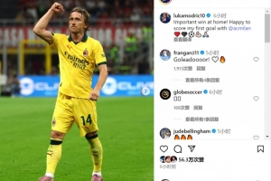 莫德里奇社媒晒出比赛照片,并写道:“在主场取得重要胜利!很高兴攻入我在米兰的首粒进球。”