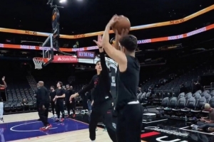 GIF-谢泼德赛前热身 底角三分四连中