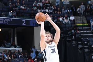 此役灰熊中锋兰代尔高效发挥,打了31分钟18投10中,三分6中3、罚球3中3砍下26分10篮板2助攻,正负值-1。