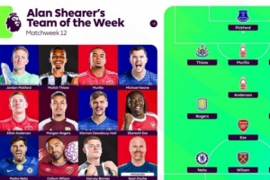 全文摘要:英超第12轮最佳阵容由名宿阿兰·希勒评选。门将为埃弗顿的皮克福德,后防由纽卡、诺丁汉森林及埃弗顿球员组成。中场方面,阿森纳的埃泽与维拉的罗杰斯入选,前锋则包括切尔西内托、西汉姆联威尔逊和纽卡巴恩斯。诺丁汉森林主帅戴奇当选本轮最佳教练。