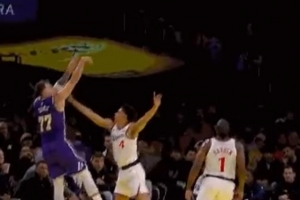 GIF-东契奇三分给了犯规 快船挑战成功