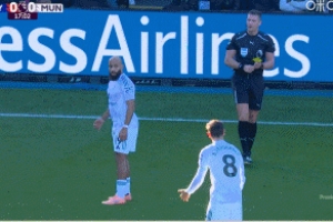 体育资讯11月30日讯 英超第13轮,曼联客战水晶宫,第18分钟,姆伯莫不满裁判判罚,愤怒砸球吃到黄牌!