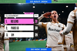 据法甲官方的统计,朗斯上一次登顶联赛积分榜是21年前。2004年8月22日,3轮联赛过后朗斯以7分位列榜首。