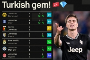 全文摘要:尤文小将伊尔迪兹在欧冠与多特的比赛中传射建功。他近期状态火热,近10场各项赛事已贡献6球7助攻,包括对国米的传射,展现强大攻击力,成为球队关键先生。