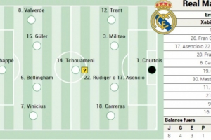全文摘要:《阿斯报》预测,皇马将在西甲客场战毕尔巴鄂竞技。预测首发阵容为:库尔图瓦把门;后防由阿诺德、米利唐、吕迪格及阿森西奥、卡雷拉斯组成;中场/边路配置琼阿梅尼、维尼修斯、贝林厄姆、居莱尔和巴尔韦德;锋线则由姆巴佩领衔。