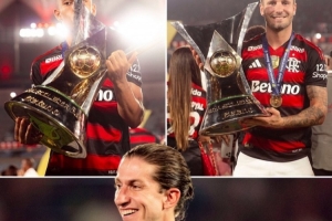 马竞官方晒出3人的照片,并配文:“菲利佩·路易斯、利诺和萨乌尔一周内为弗拉门戈队赢得了第二座冠军!😍祝贺你们,冠军们!”