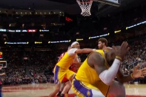 GIF-詹姆斯头部被击中,但裁判没吹