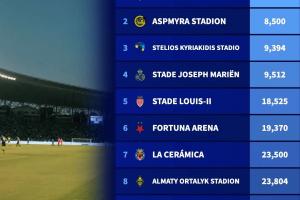 全文摘要:德国转会市场列出本赛季欧冠容量最小球场排名。阿塞拜疆卡拉巴赫主场以5800人位居榜首,挪威博德闪耀主场8500人次次席。摩纳哥、布拉格斯拉维亚等队球场容量均不足三万,展现欧冠参赛球队主场规模的多样性。