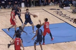 “杨瀚森先是用一个假动作让防守球员上当,随后运球突破制造内线威胁。在吸引到对方协防后,他迅速将球传给卡马拉,后者轻松完成扣篮。在夏季联赛中他就多次展现了出色的组织能力,这次进攻再次证明了他的潜力。”Point Made Basketball写道。
