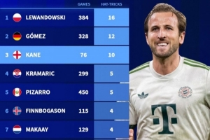 全文摘要:德国转会市场盘点21世纪德甲球员帽子戏法次数。莱万以384场16次居首,戈麦斯328场12次次之。凯恩虽仅76场,但已轰出10次帽子戏法,力压克拉马里奇、皮萨罗等人,升至历史第三位,效率惊人。