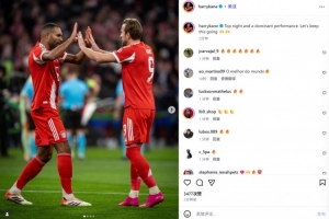 凯恩本场首发未能直接参与进球,他在赛后晒出和进球功臣若纳坦·塔的合照,并配文:“今晚表现顶级,堪称统治力的表现。让我们继续保持这种状态🙌🙌”。