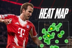 拜仁官推晒出本场比赛凯恩热点图,球场覆盖范围极大,官推配文写道:“不仅仅是一名前锋!”