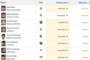 体育资讯12月12日讯 德转更新西甲身价,涨幅排行中,居莱尔以3000万欧的涨幅位列第1,姆巴佩涨2000万欧第2。