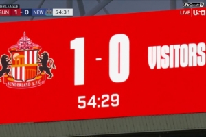 体育资讯12月15日讯 桑德兰在本轮英超1-0击败纽卡,而现场画面可以看到,桑德兰没有将死敌纽卡的队名和队徽放到记分牌上。
