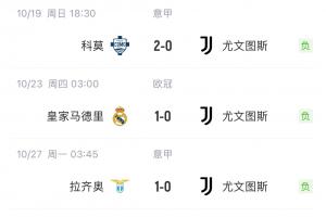 尤文曾在10月份遭遇科莫、皇马、拉齐奥三连败,此战过后,尤文近11场取得7胜3平1负的战绩,目前球队意甲排名第5,欧冠第17,意杯晋级8强。