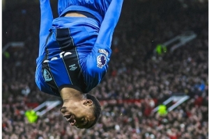 本场比赛双方拉开架势大打对攻战,比赛走势也是跌宕起伏,英超官推晒出一张伯恩茅斯球员克鲁皮进球后空翻庆祝的照片,配文写道:“如果用一张图片描述本场比赛的话🙃”