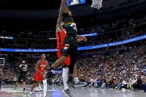 GIF-卡梅隆·约翰逊突破过掉亚当斯,飞扣2+1,还有慢放!
