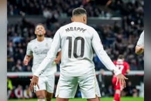体育资讯12月21日讯 西甲第17轮比赛,姆巴佩点射破门,皇马2-0击败塞维利亚。姆巴佩今年为皇马攻入59球,追平C罗保持的皇马球员自然年进球纪录。
