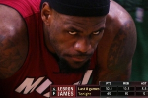 系列赛前5场比赛,热火以2-3落后,俨然已经在悬崖边上。詹姆斯在G6火力全开,全场26中19,三分4中2,罚球9中5,得到45分15篮板5助攻,率领热火以98-79击败凯尔特人,将系列赛拖至抢七大战。