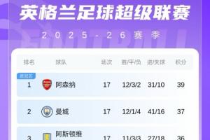 英超积分榜形势如图