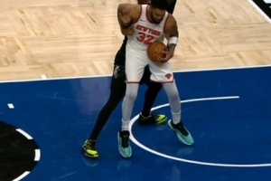 GIF-森林狼挑战成功!唐斯投篮犯规改判先夹手臂进攻犯规