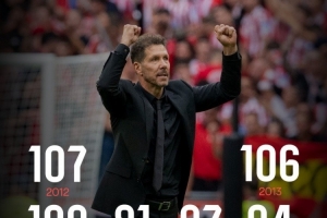 西蒙尼麾下马竞历年进球数量(所有赛事):