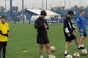 体育资讯12月26日讯 博主“稀盐酸青训频道”晒图,泰山球员谢文能现身西班牙人训练基地。